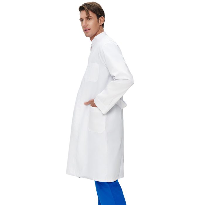 Ιατρική μπλούζα ανδρική με μάο γιακά, μακρύ μανίκι με μανσέτα με διπλά κουμπιά, ζώνη με κουμπιά, σχίσιμο πίσω, δύο τσέπες και τσεπάκι στήθους με θέση για στυλό.